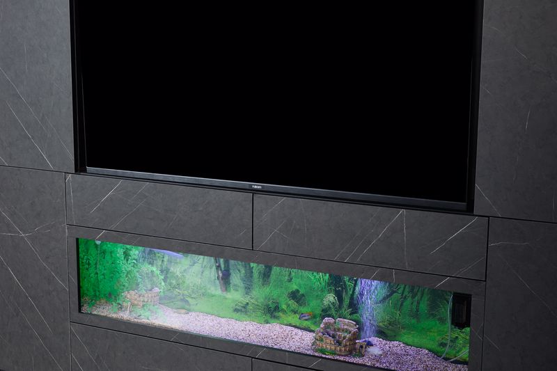 יחידת קיר מעוצבת אקווריום – מזנון קיר מעוצב העשוי מחומרים איכותיים.